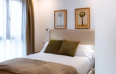 El proyecto incluyó la confección e instalación de cabeceros tapizados, cortinas técnicas y mobiliario auxiliar, empleando tejidos resistentes, agradables al tacto y fáciles de mantener. Cada elemento textil fue seleccionado para integrarse con naturalidad en la decoración, sin renunciar a las prestaciones técnicas propias del sector contract.