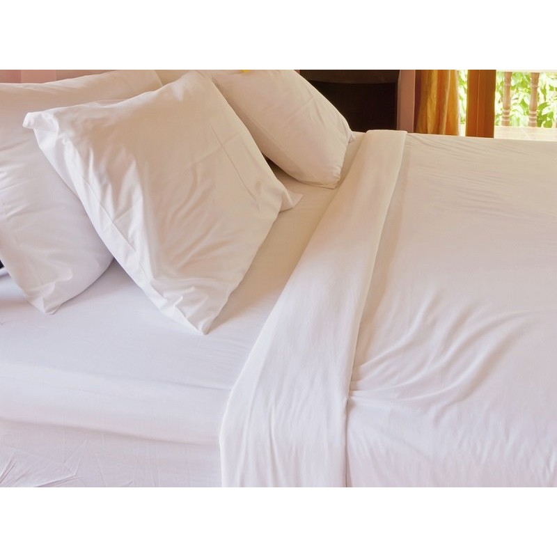SÁBANA ENCIMERA POPELÍN COLOR BLANCO COMPOSICIÓN 50% ALGODÓN/50% POLIÉSTER. 40*40 (URDIMBRE Y TRAMA) Y 200 HILOS.